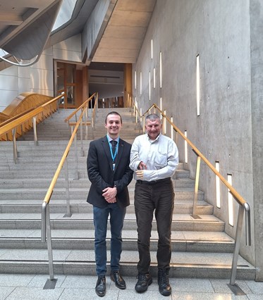 Above: The CPwD Regional Champion for the CPA British Islands and Mediterranean Region, Jeremy Balfour, MSP (right) welcomed the CPwD Network’s Coordinator, Clive Barker, to The Scottish Parliament to observe their first accessibility audit.