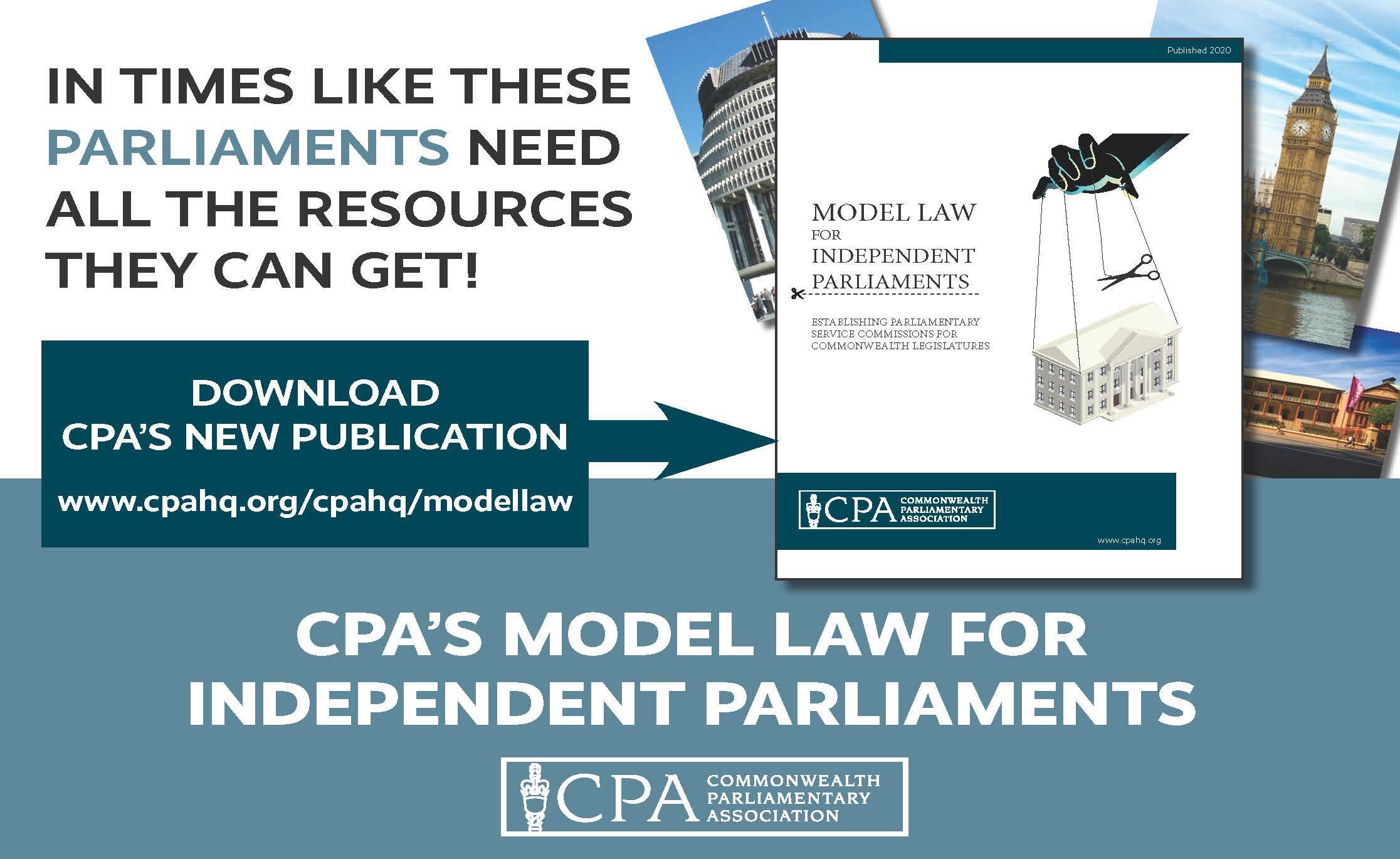 As part of its commitment to the Commonwealth Latimer House Principles, as well as its work in benchmarking Parliaments against international standards, the Commonwealth Parliamentary Association (CPA) has developed a Model Law for Independent Parliaments to help empower Parliaments to take control away from the Executive to ensure it has the administrative, operational and financial resources it needs to function effectively.