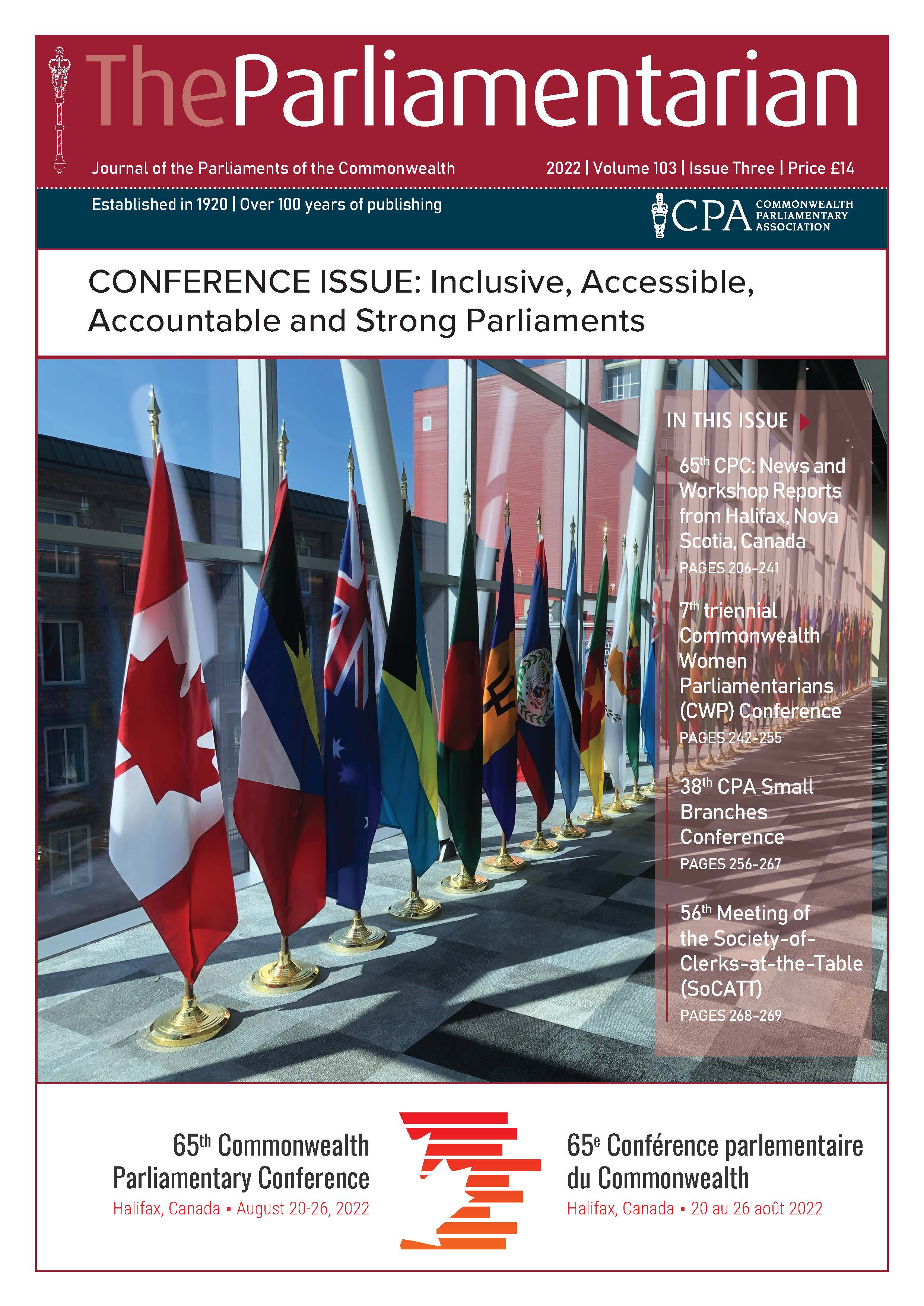 The Parliamentarian is the quarterly Journal of Commonwealth Parliaments published by the Commonwealth Parliamentary Association. This digital edition features news and reports from the 65th Commonwealth Parliamentary Conference in Halifax, Nova Scotia, Canada.