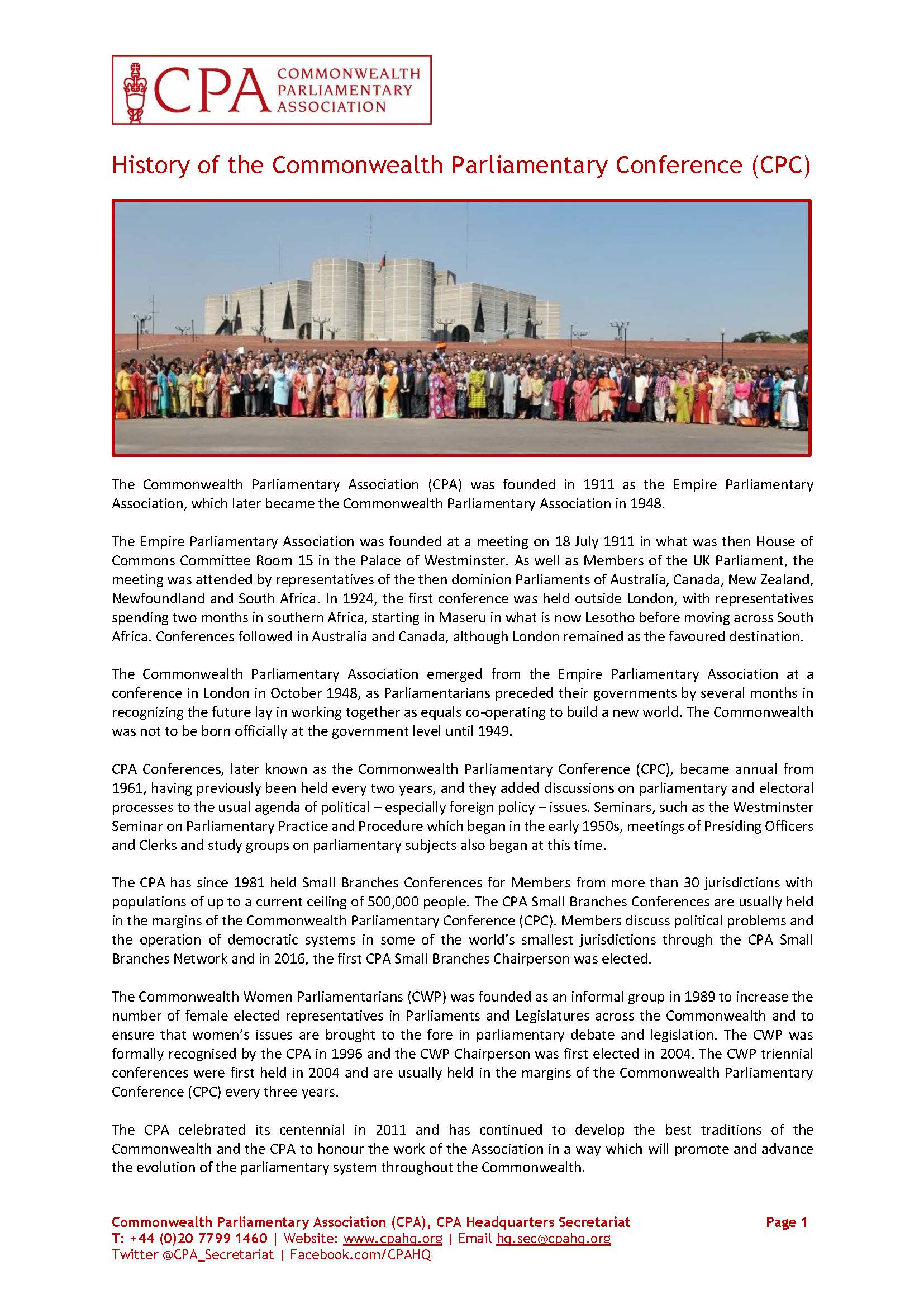 Following the 67th CPC, the CPA Headquarters Secretariat will be conducting a review of the CPC modalities. In determining what changes may be required moving forward, it is vital for us to receive input and feedback from participants, especially the CPA Membership.