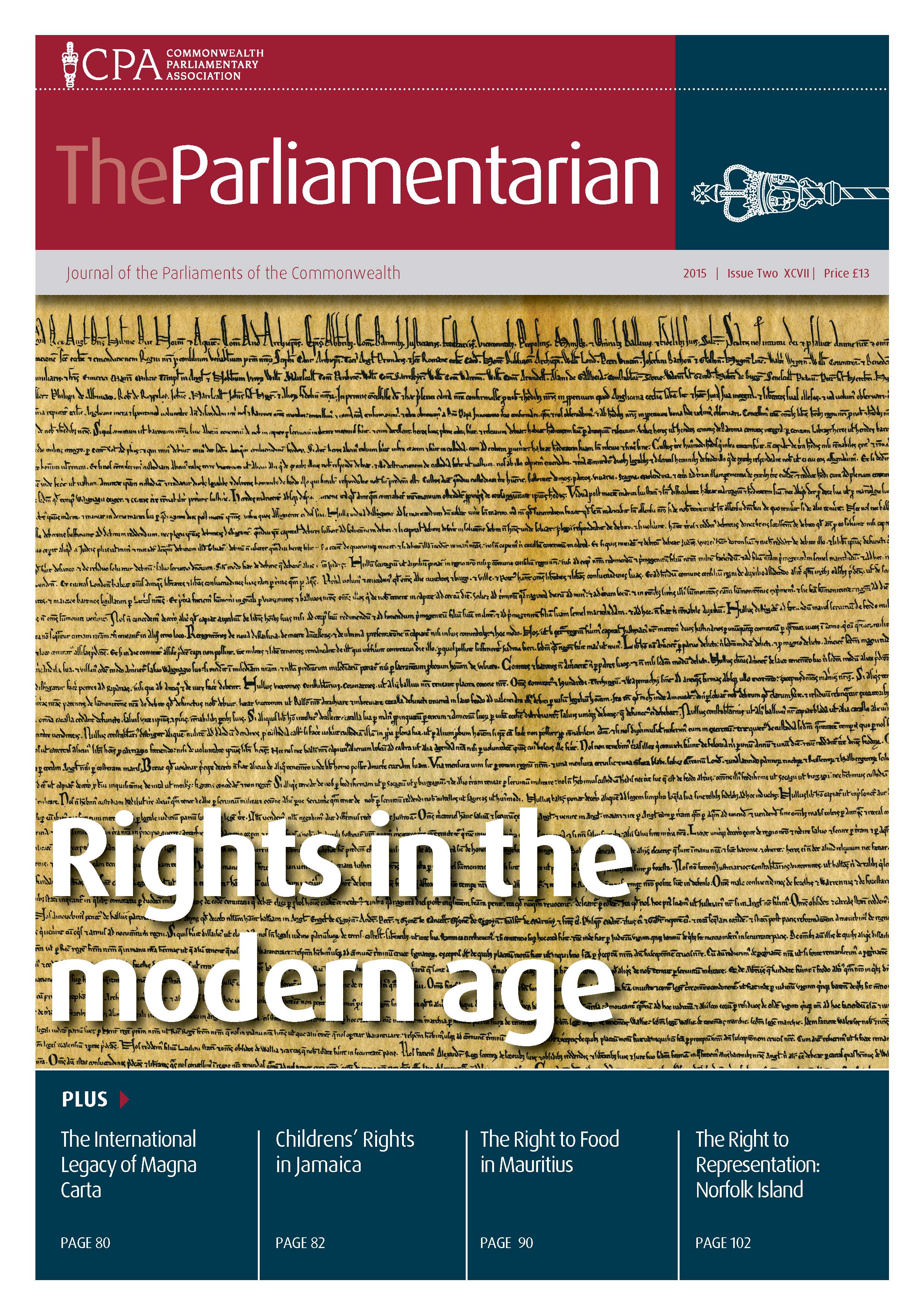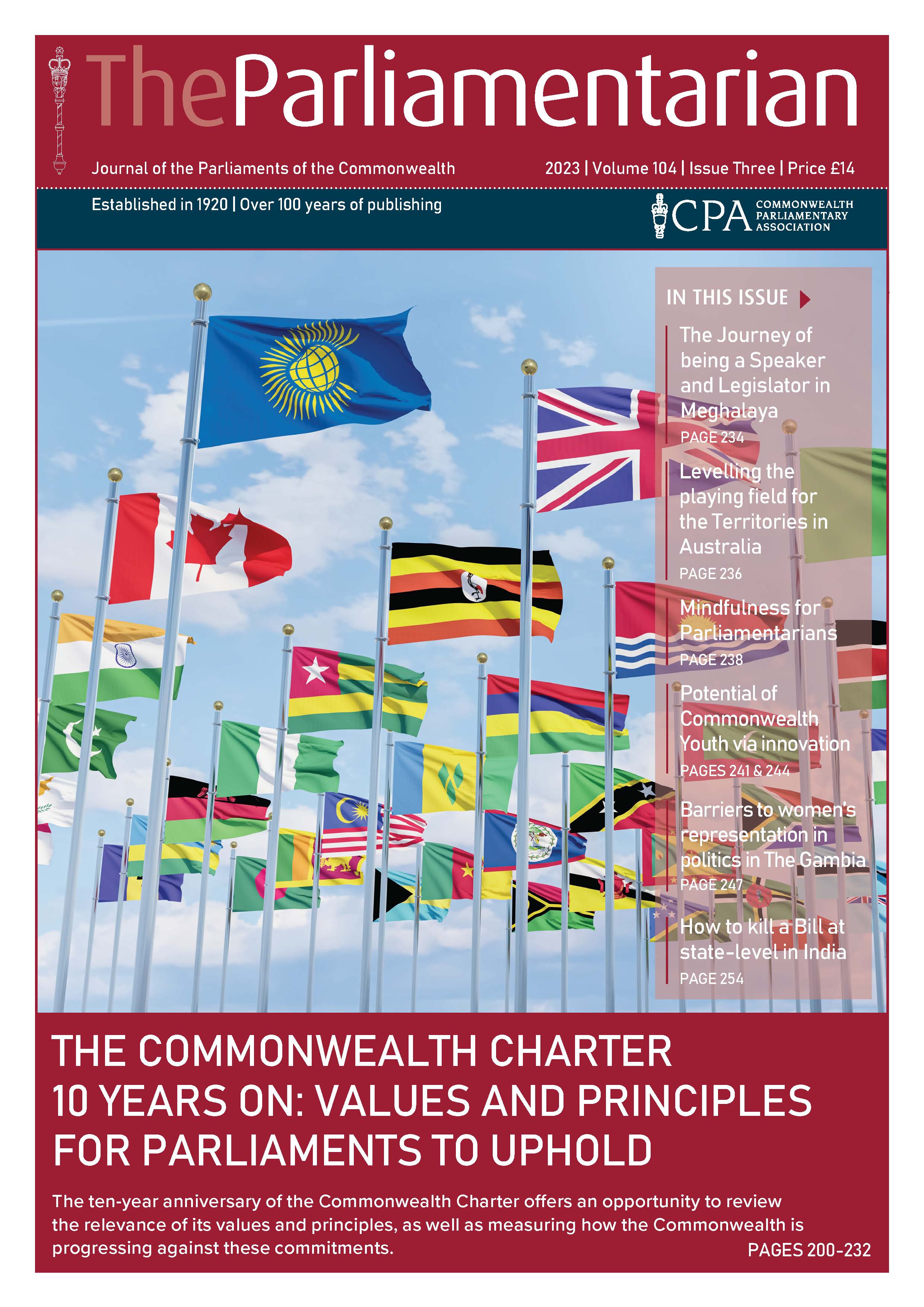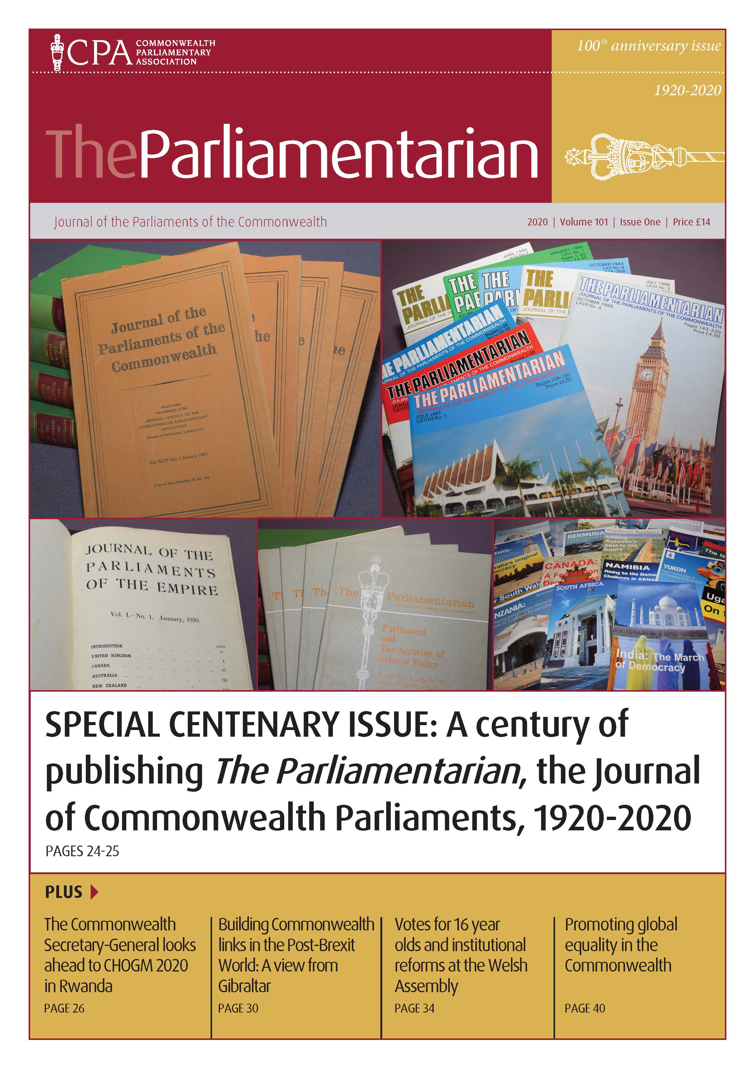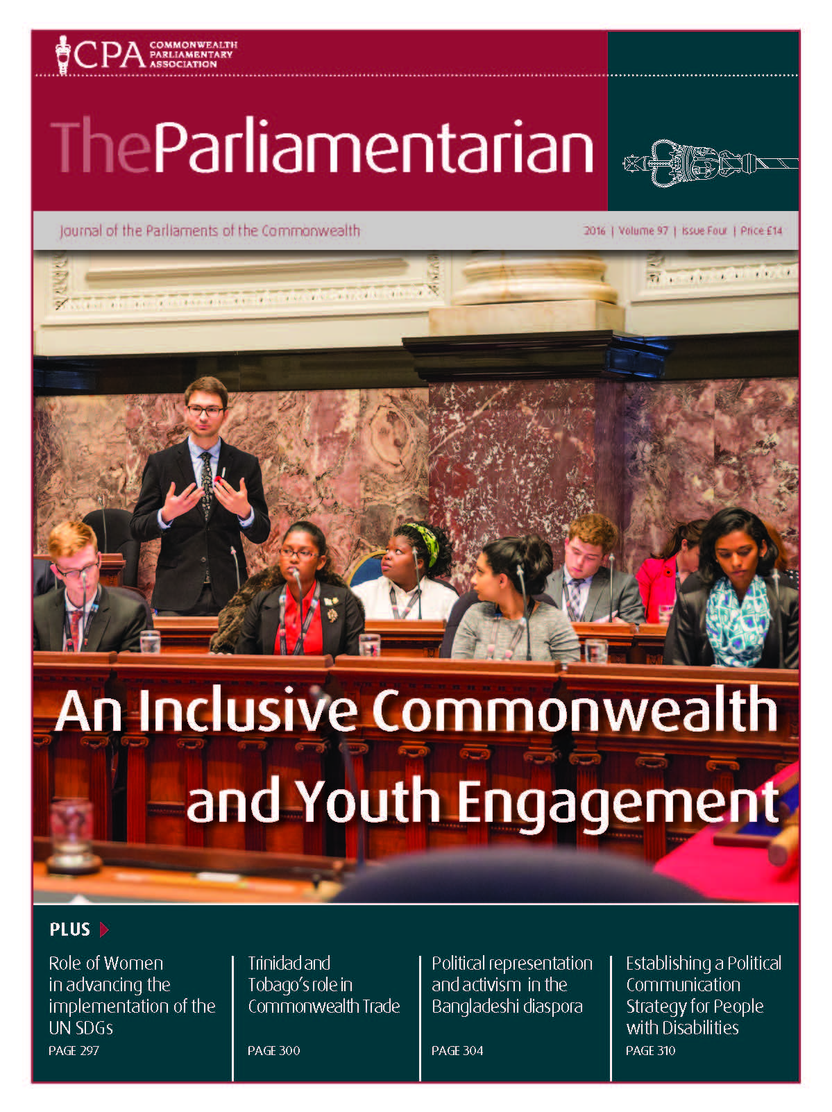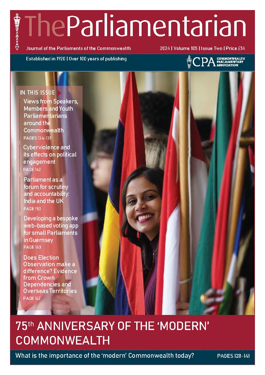 This issue of The Parliamentarian also features a series of Commonwealth Youth Voices articles on a wide range of topics by young citizens from Gibraltar, Wales, UK, Antigua and Barbuda, St Vincent and the Grenadines, Barbados, Belize and Pakistan.