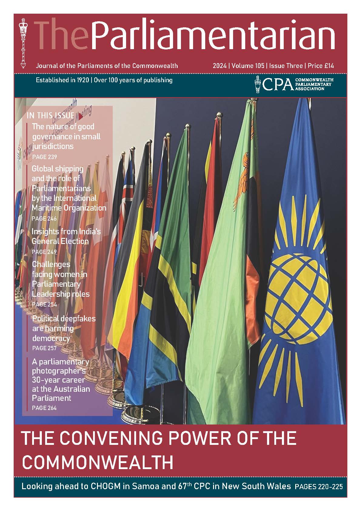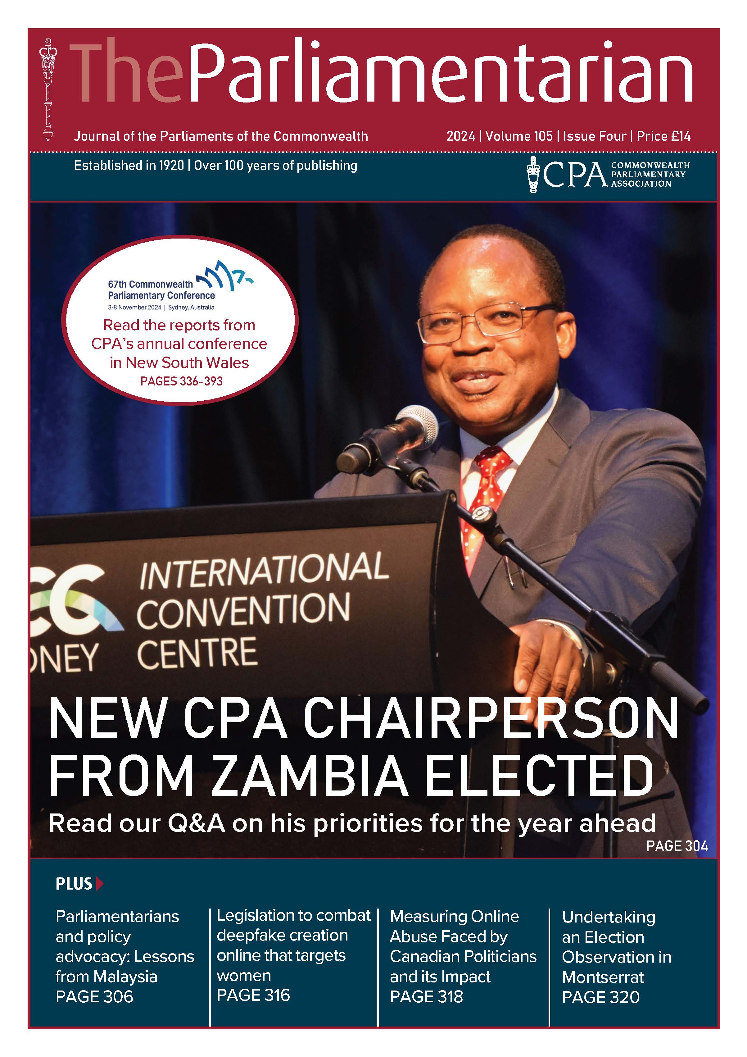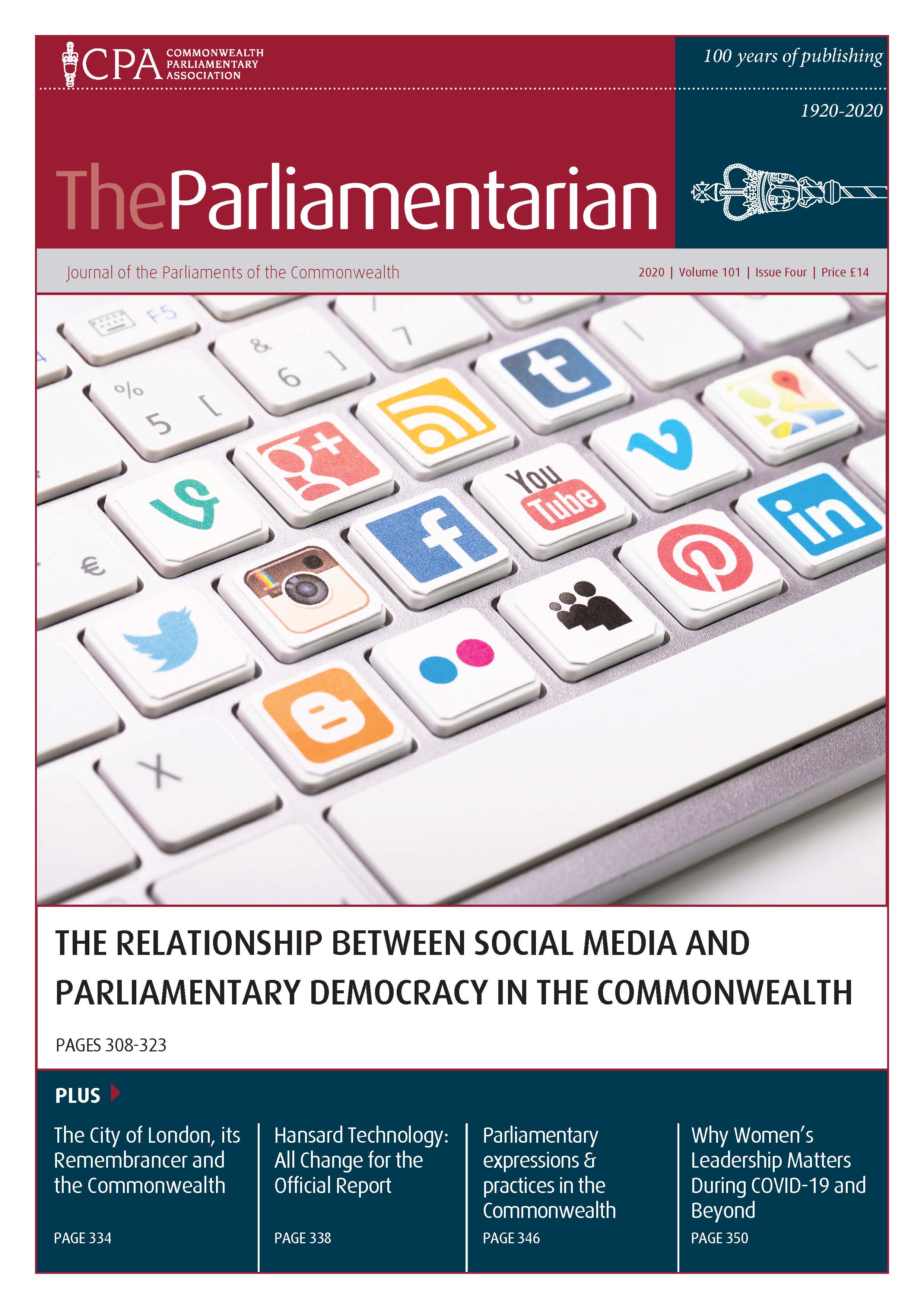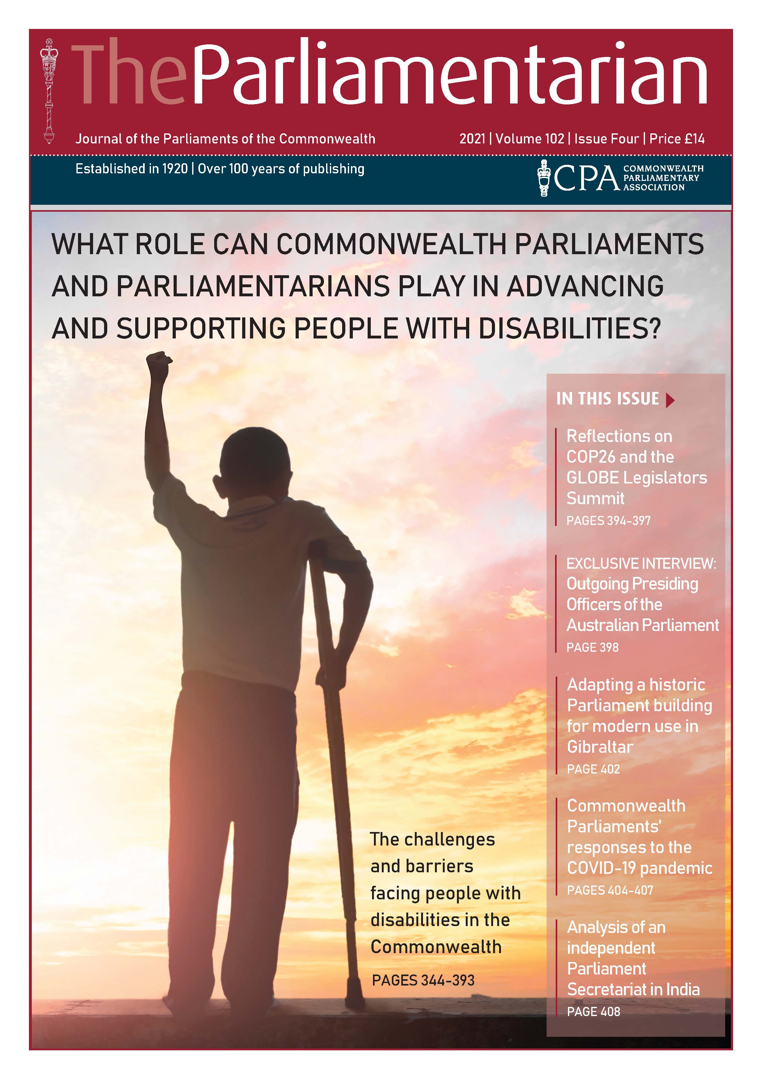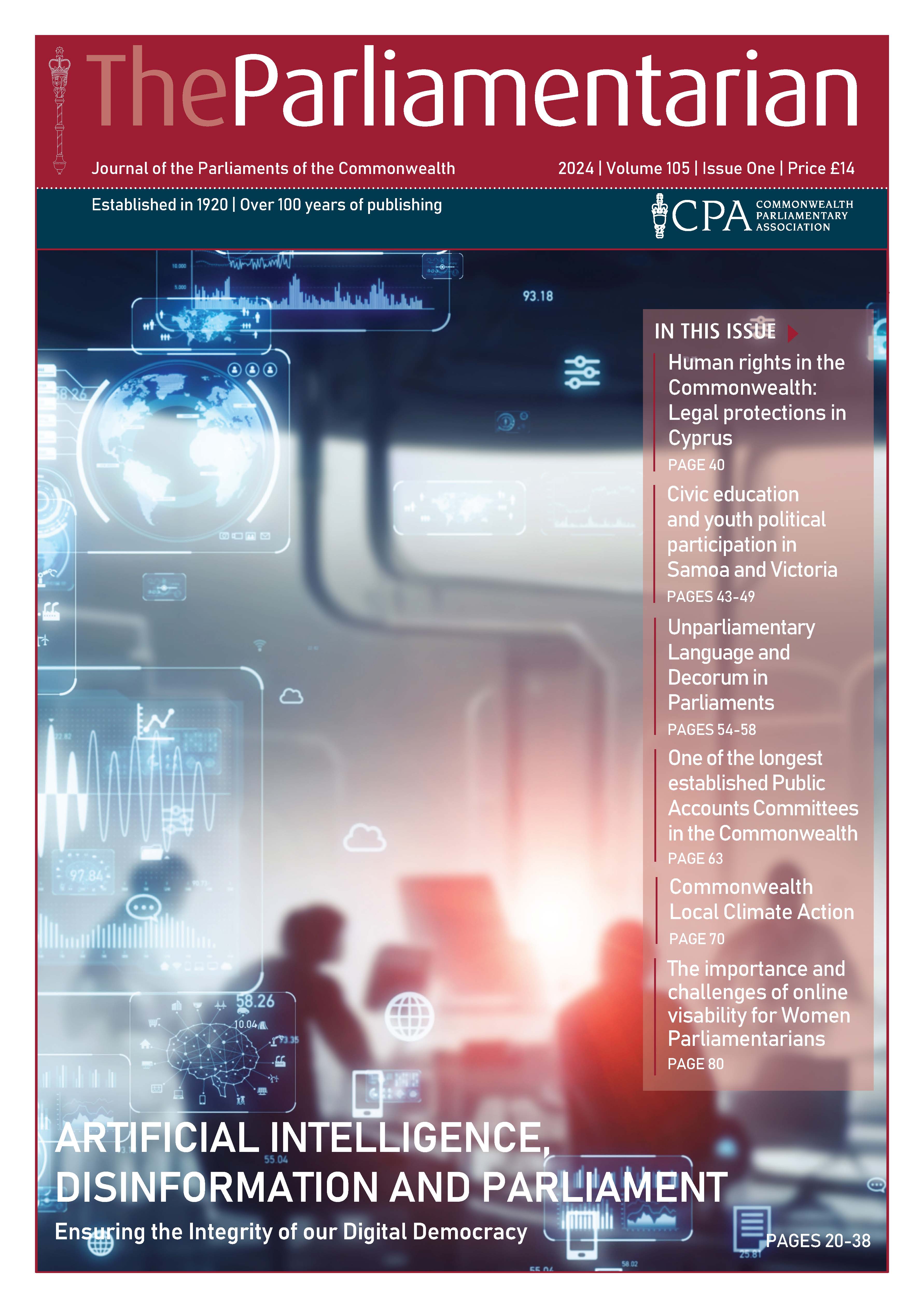 This issue of The Parliamentarian also features a series of Commonwealth Youth Voices articles on a wide range of topics by young citizens from Gibraltar, Wales, UK, Antigua and Barbuda, St Vincent and the Grenadines, Barbados, Belize and Pakistan.