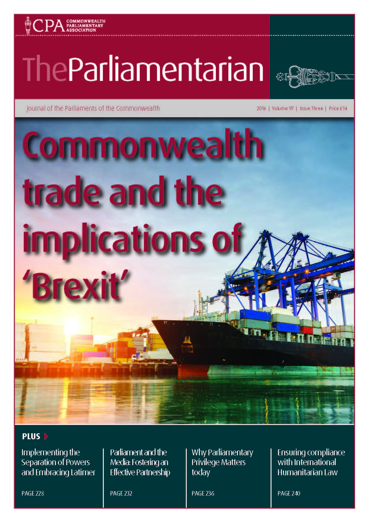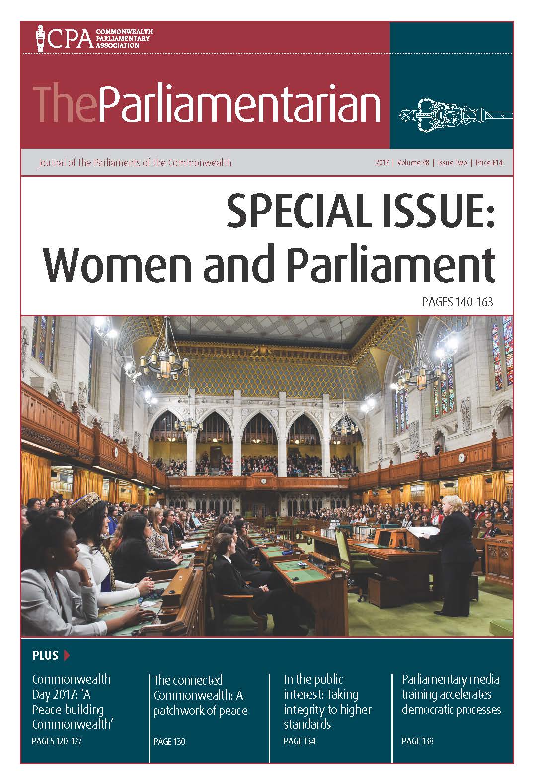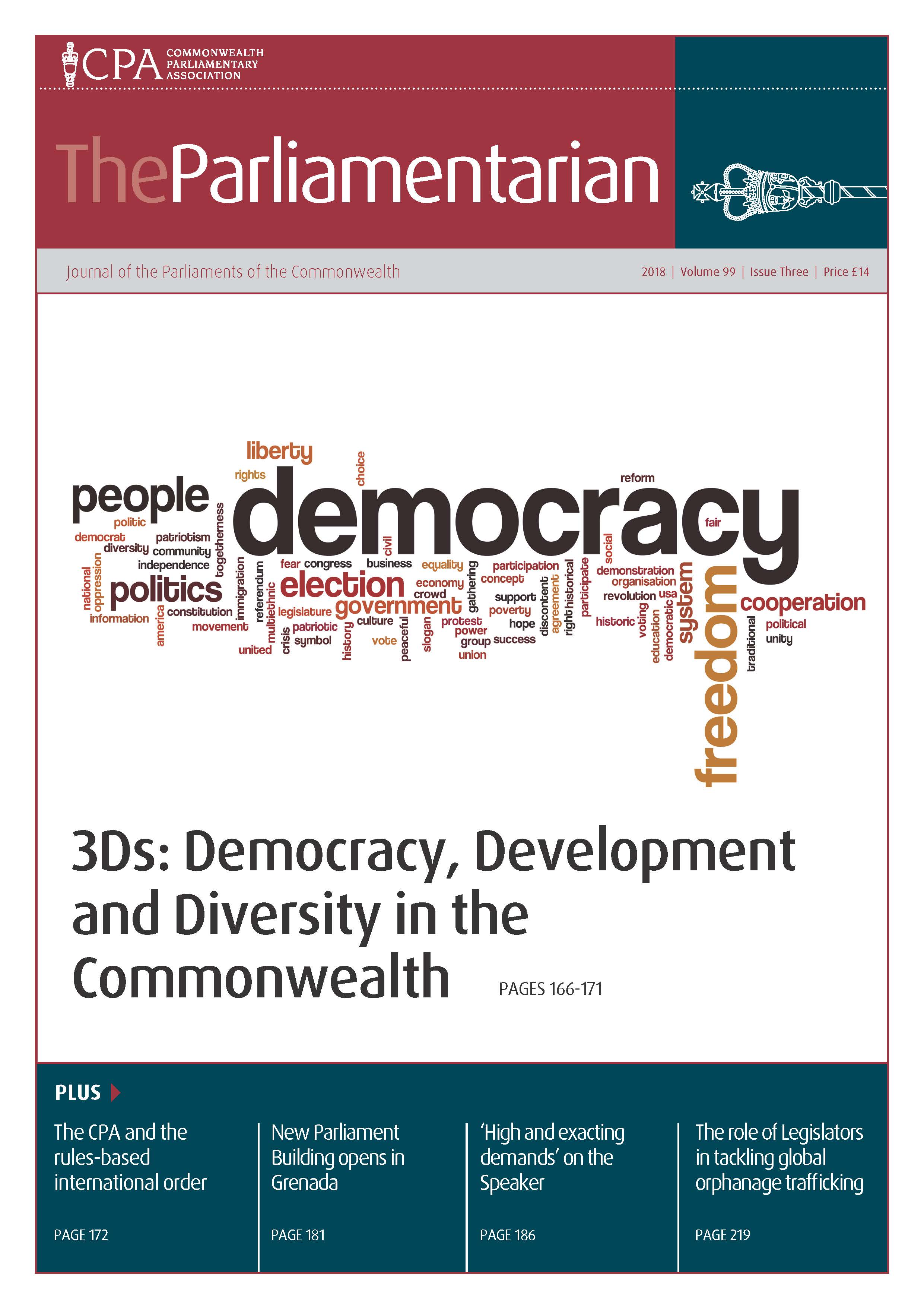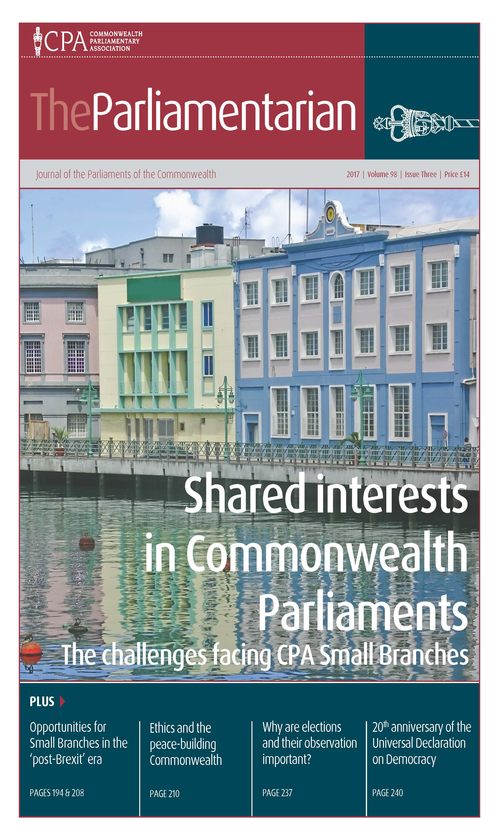 This issue features articles from Commonwealth Speakers, MPs and parliamentary officials from Canada, India, UK, Pakistan, Uganda as well as global experts and international organisations. This issue looks at the governmental changes in St Helena, the appointment of the first Aboriginal Liaison Officer in New South Wales, the importance of intra-Commonwealth trade and a case study on gender equality from the Swedish Parliament.