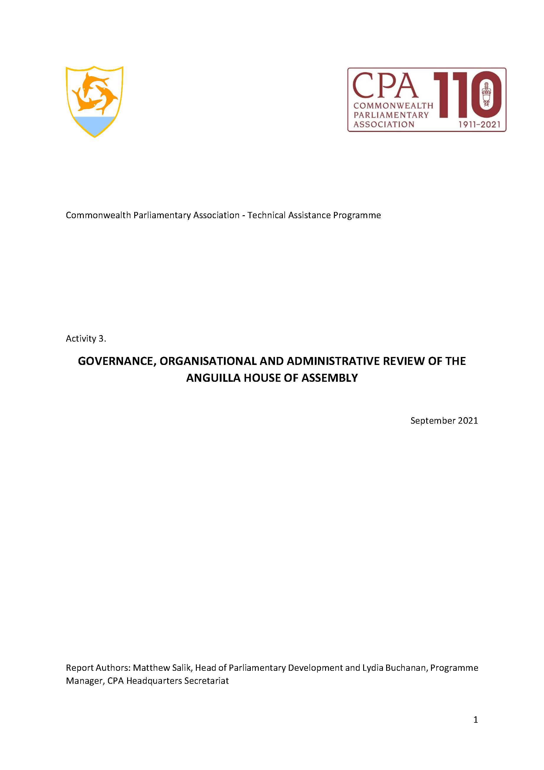 In early 2021, the House of Assembly commissioned the Commonwealth Parliamentary Association (CPA) to conduct a review of the functions, leadership, management and administration of the House. The review focused on how the House was funded, the independence of the House from the Government and Judiciary and the resources available to Members to ensure robust and effective good governance. Between 31 August and 9 September 2021, two technical advisors were deployed to Anguilla to support the House in conducting the review. Consultations were undertaken with a large cross-section of stakeholders including current and former Members, members of civil society, government and parliamentary officials and the media.