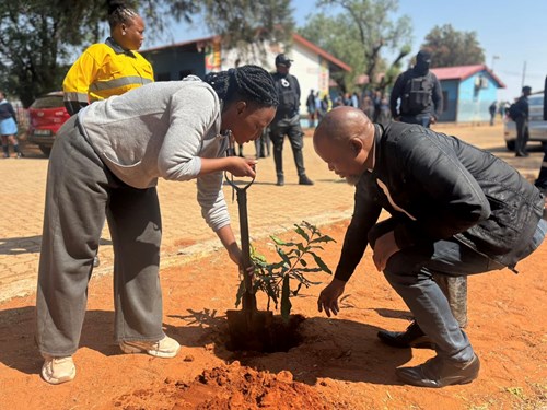 The North West Provincial Legislature’s Deputy Speaker, Hon. Collen Main, MPL led Members of Parliament from the CPA North West Branch during a tree planting programme at Phatsima High School in Atamelang on 26 September 2025. The tree planting programme is part of the CPA Branch’s resolutions relating to climate change and environmental sustainability.