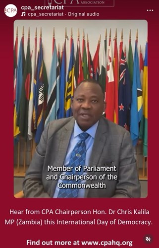 This International Day of Democracy, the Chairperson of the CPA Executive Committee, Hon. Dr Christopher Kalila, MP (Zambia) released a video message discussing the CPA's democratic values, threats to democracy and the upcoming Commonwealth Parliamentary Conference.