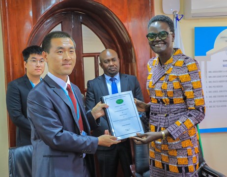 Above: The Speaker of the National Assembly of Tanzania, Hon. Dr Tulia Ackson, MP representing the Board of Commonwealth Investment Company Limited (CICL) with the CRJE (East Africa) representative, Project Manager, Mr Lu Chunbao.