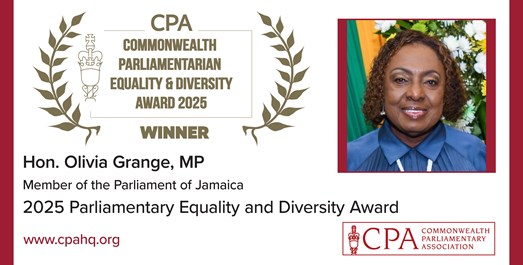 Hon. Olivia Grange, MP, Minister of Culture, Gender, Entertainment and Sport and the Deputy Leader of the House in the Parliament of Jamaica was awarded the 2025 Parliamentary Equality and Diversity Award in recognition of her transformational and inclusive leadership in advancing gender equality and social justice in Jamaica.